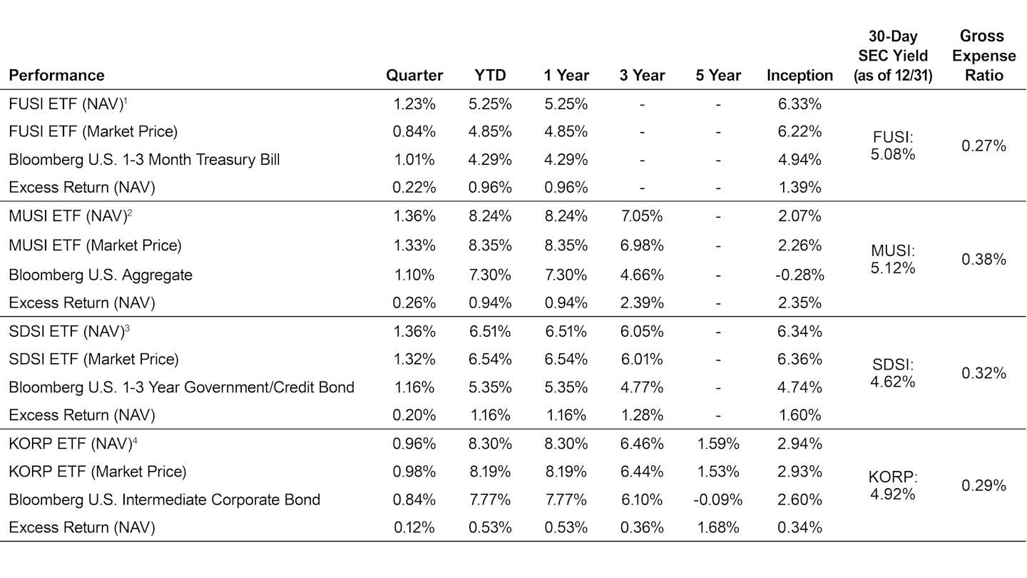 As one of the first active fixed-income ETFs in the industry, KORP now features a five-year track record and was the largest active corporate bond ETF in assets under management (AUM) at year-end 2025. Moreover, KORP was the leader in AUM and net flows in the Morningstar Corporate Bond Category.